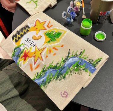 Participants were provided with simple cotton bags and a wide selection of art supplies, from fabric paints and stencils to embroidery threads and patches. Guided by their creativity and tutorials, everyone had the opportunity to create their own design and personalize their bag, transforming a simple accessory into a unique work of art.